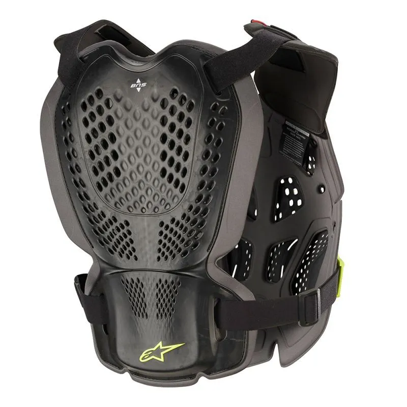 An ultra-lightweight protective system offering excellent upper body protection against impacts and roost, the A-1 protector features front and rear hard shell plates backed with bio-foam padding for a secure and comfortable fit. Quick and easy to put on, the A-1 provides extended padding to protect against roost without obstructing arm movement and is fully compatible with Alpinestars Bionic Neck Supports.