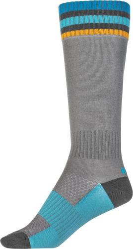 Fly Racing MX socks are constructed with durable stitching and a padded heel and toe for added comfort.